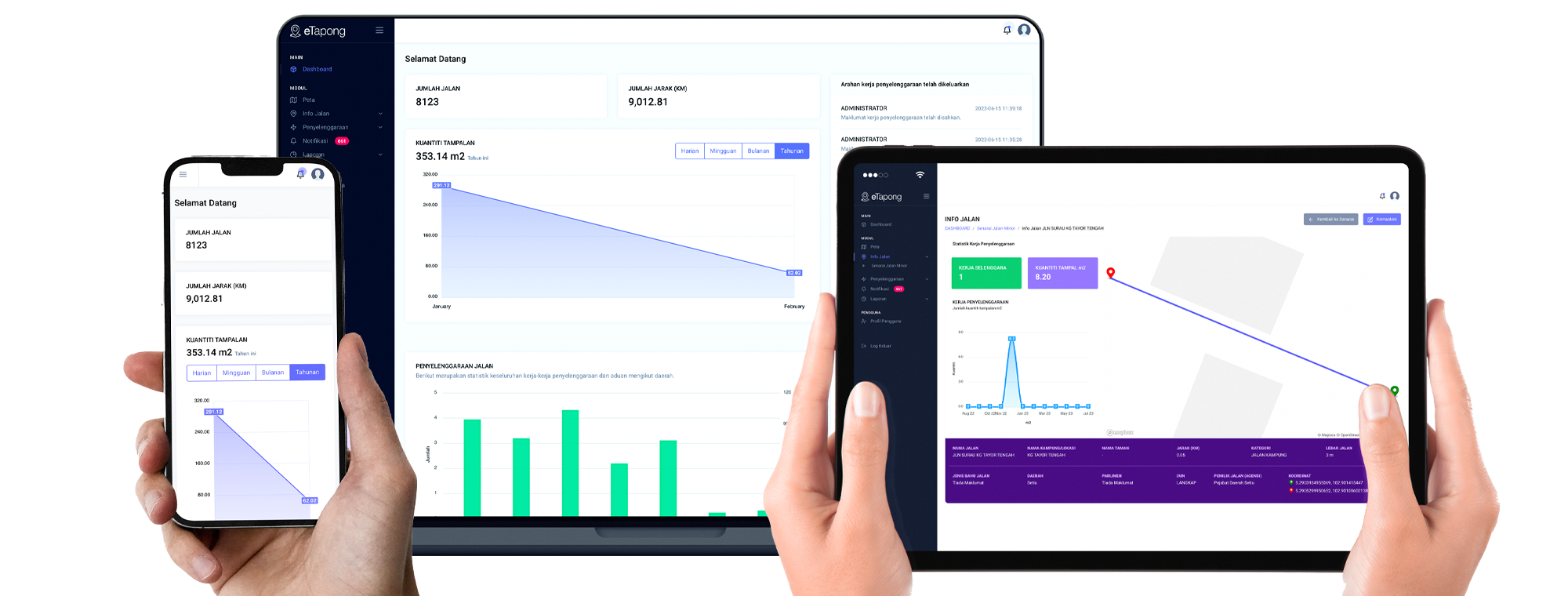 Statistik aduan dan kerja-kerja yang sudah dibuat.