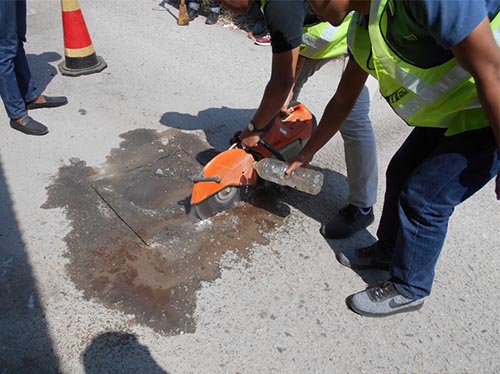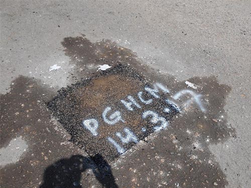 Tidak wajar kerana keratan segi empat, 150 mm dari tepi pothole, perlu dibuat dan dibentuk dengan mesin pemotong pavemen, dengan kedalaman keratan tidak kurang dari kedalaman pothole. Penampalan terus pothole tanpa dibuat keratan, atas sebab keselamatan pengguna jalan raya di mana setiap pothole seharusnya ditampal dalam tempoh 24 jam mengikut Piagam Pelanggan, dianggap bersifat sementara.
